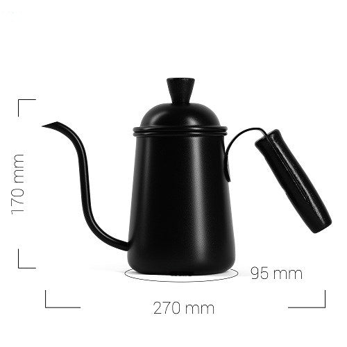 Ấm rót nước nóng pha cà phê bằng inox, cán gỗ - Đen