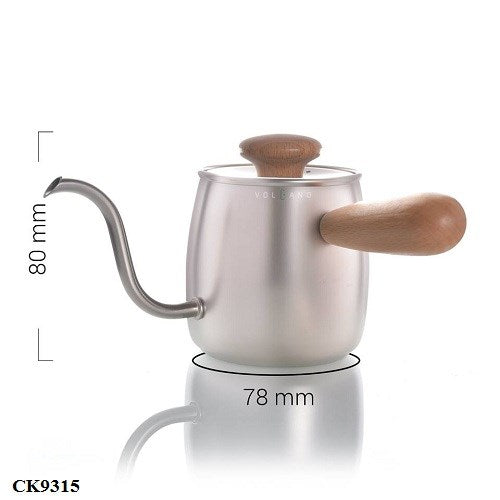 Ấm rót nước nóng pha cà phê cán gỗ lệch - Bạc