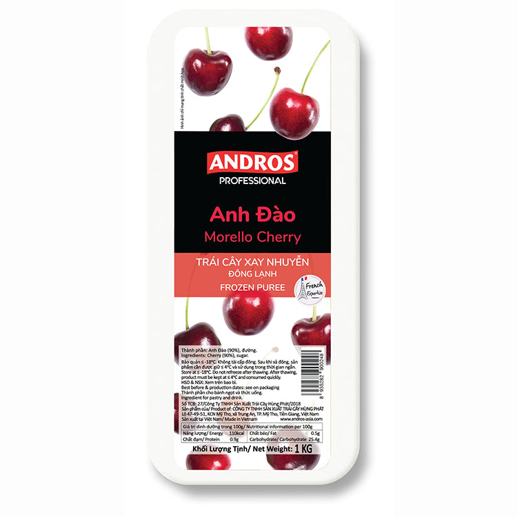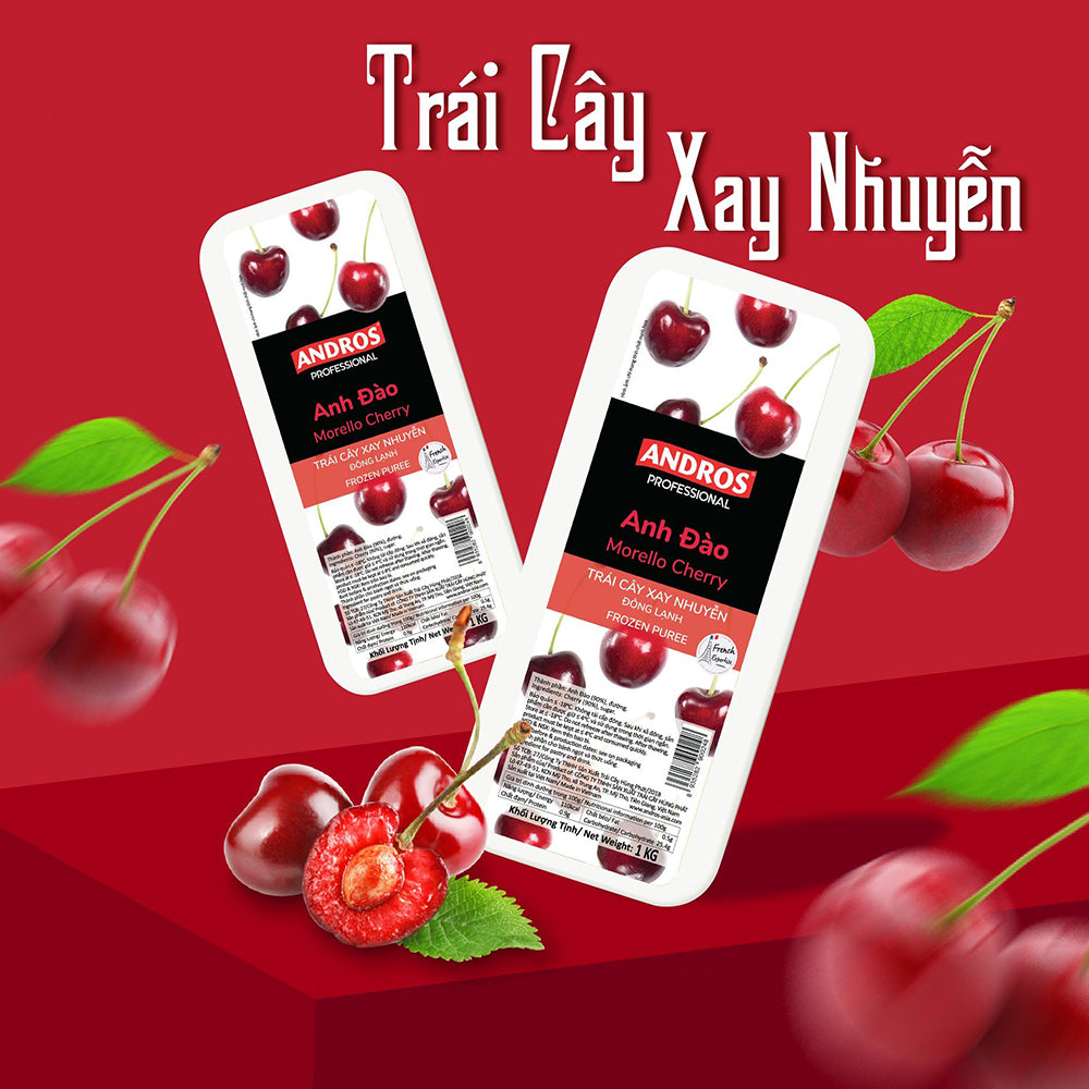 Anh Đào Xay Nhuyễn Đông Lạnh Andros 1kg (Cherry Frozen Puree 1kg) x 6 Hộp