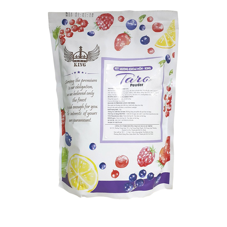 • Bột khoai môn King có thành phần: bột kem không sữa siro glucose, dầu hạt cọ hydro hóa,…