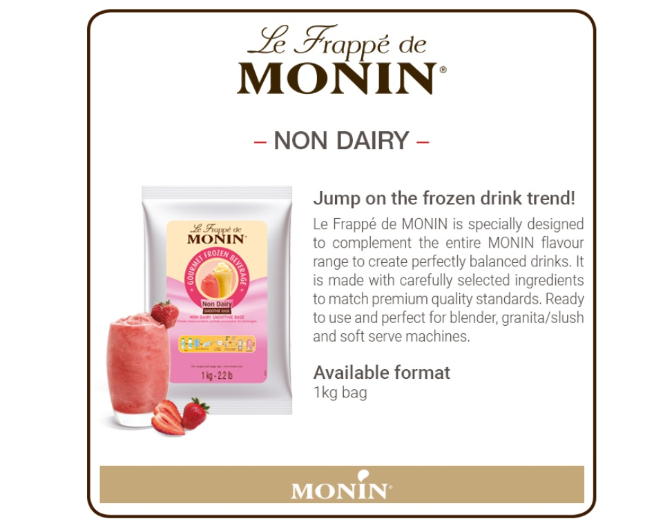 Bột sinh tố Monin được thiết kế để tạo ra các loại sinh tố mịn màng và thơm ngon. Nó thường chứa các nguyên liệu như đường, hương vị tự nhiên, và thường có thêm các vitamin và khoáng chất. Sản phẩm này dễ sử dụng và phổ biến trong các quán cà phê, quầy bar, và cả ở nhà để làm các loại đồ uống lạnh.