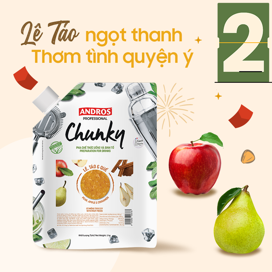 Chunky Táo Lê Quế (Pear, Apple & Cinamond) ANDROS 1 kg x 8 Túi