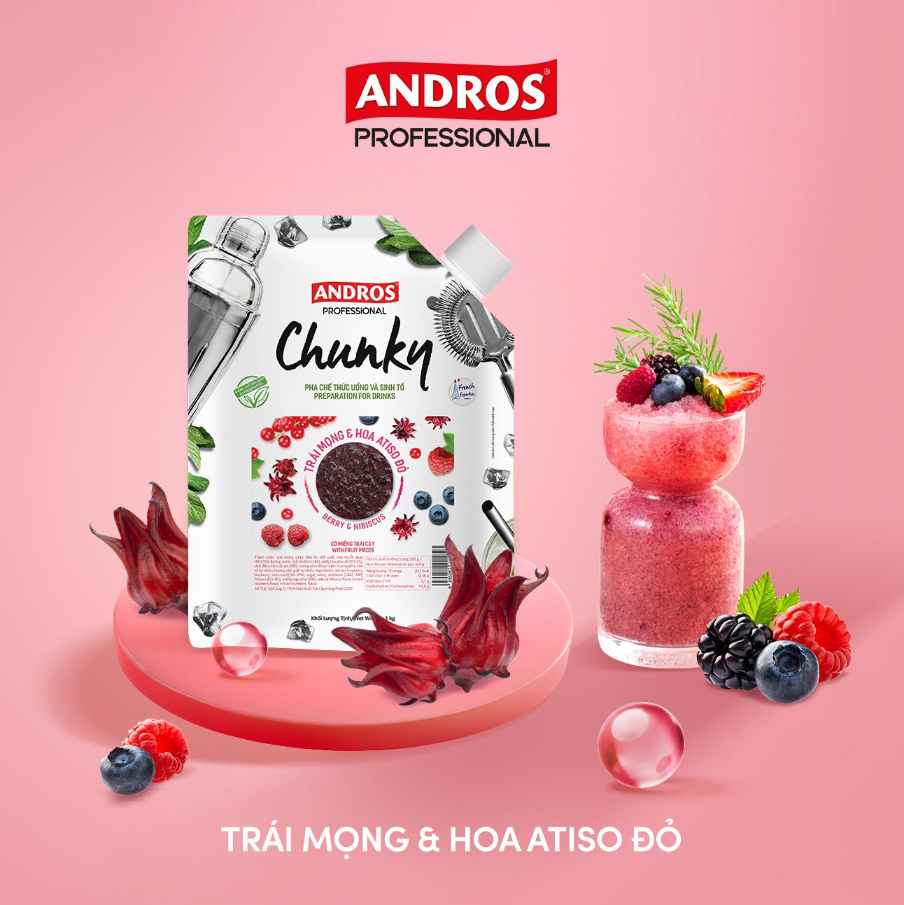 Chunky Trái mọng & Hoa Atisô đỏ (Berry & Hibiscus) ANDROS 1 kg x 8 Túi