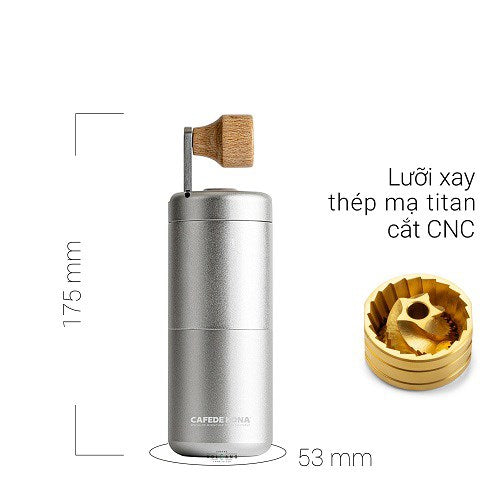Cối xay cà phê cầm tay lưới thép thân Inox Cafede Kona - Bạc - lưỡi Titan