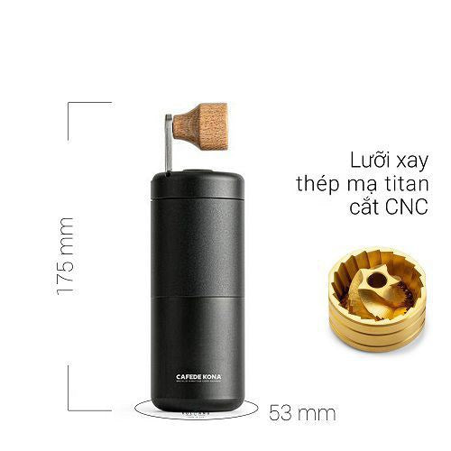 Cối xay cà phê cầm tay lưới thép thân Inox Cafede Kona - Đen - lưỡi Titan