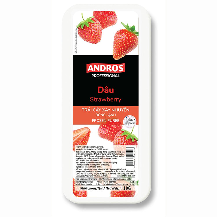 Dâu Xay Nhuyễn Đông Lạnh Andros 1kg (Strawberry Frozen Puree 1kg) x 6 Hộp