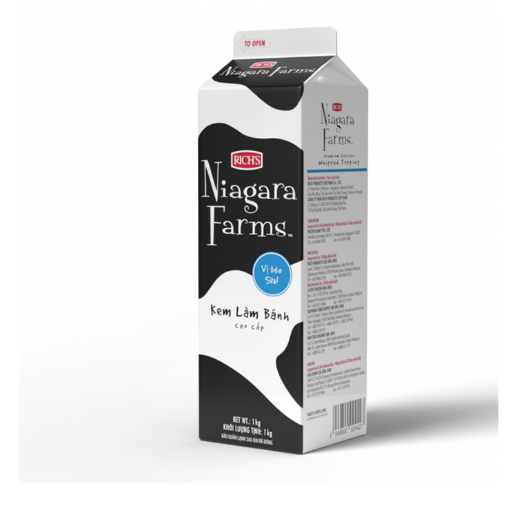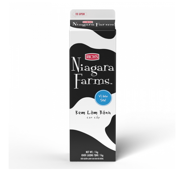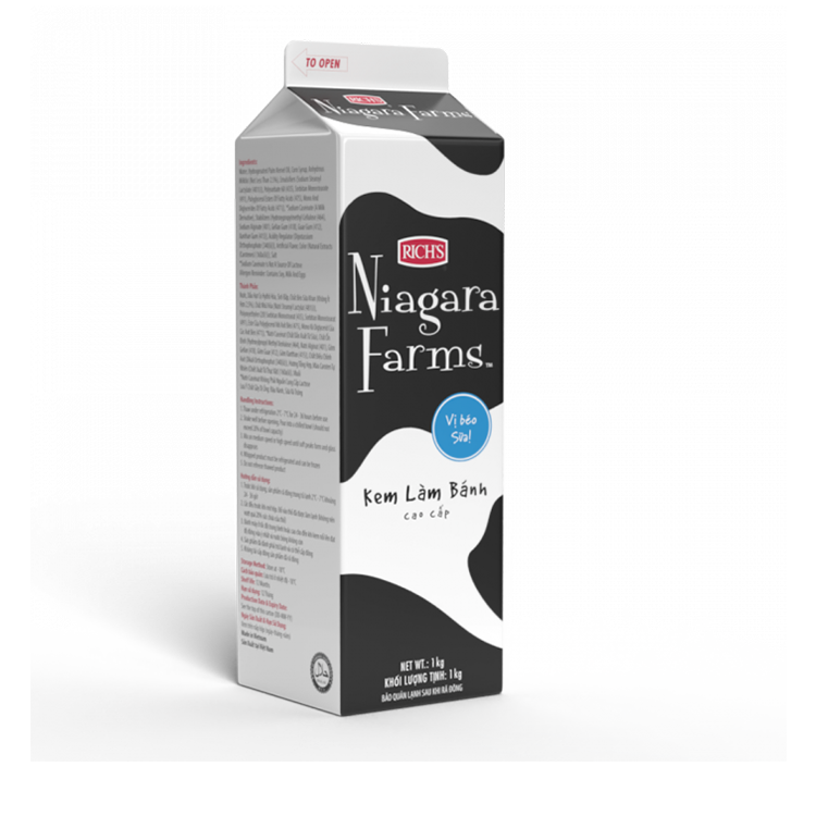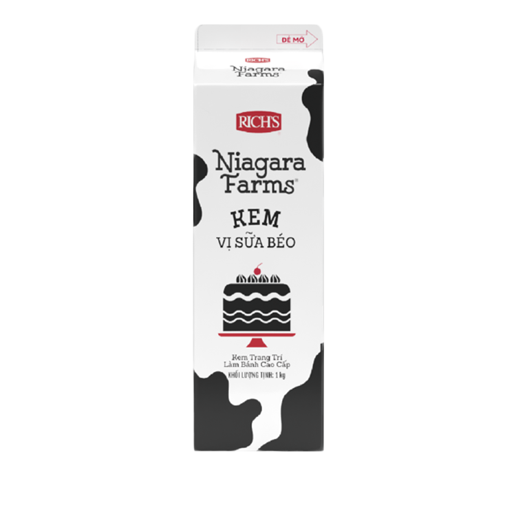 Kem Làm Bánh Rich’s Niagara Farms là kem trang trí bánh có pha trộn thành phần kem sữa động vật đầu tiên tại Việt Nam. Với các đặc tính vượt trội và hương vị béo sữa thơm ngon đặc trưng, Rich’s Niagara Farms là lựa chọn tối ưu cho dòng bánh kem có vị kem sữa động vật để có được thành phẩm hấp dẫn và cuốn hút thực khách.