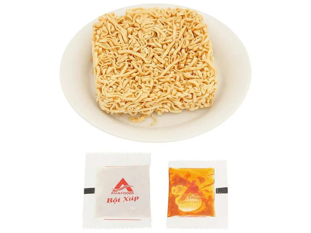 • Gói gia vị: Dầu thực vật, muối, đường, bột thịt gà, hành, rau sấy, tiêu, tỏi, ớt, chiết xuất nấm men, hương liệu.