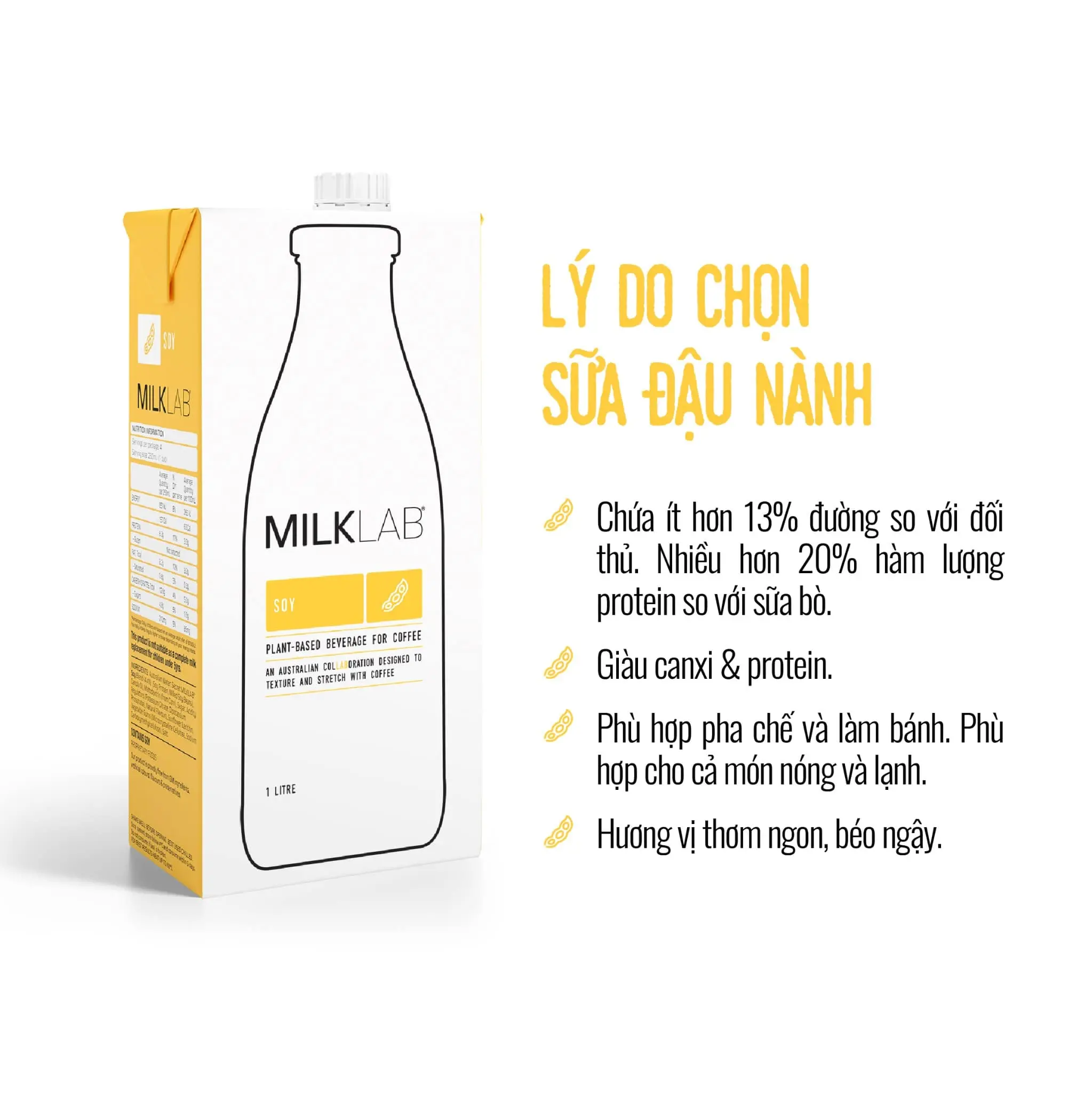 • Sữa hạt đậu nành cao cấp ít đường MilkLab – Đậu nành từ Úc | hộp 1 lít