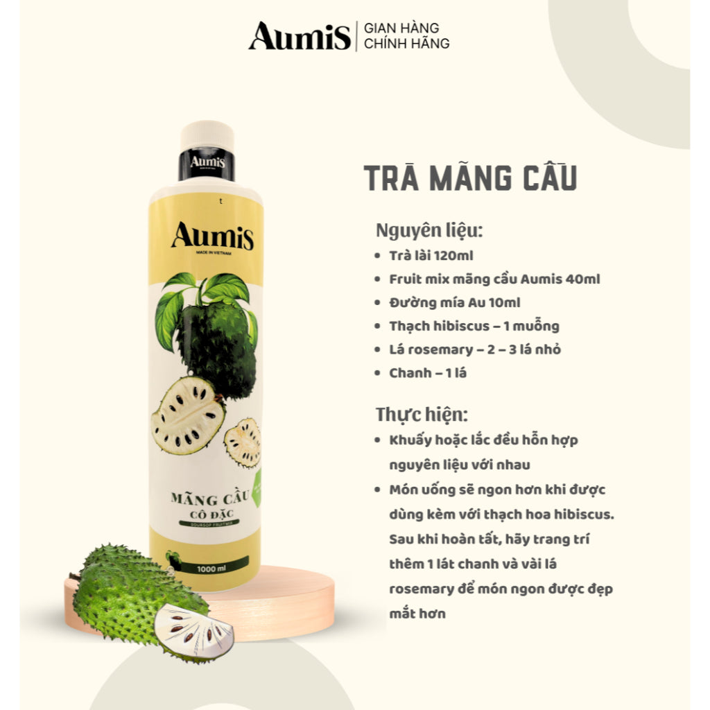 Mứt Cô Đặc (Fruit Mix) Aumis Mãng Cầu (Soursop) 1.000 ml có nguyên liệu có nguồn gốc 100% từ nông sản Việt Nam, sáng tạo nên những sản phẩm với chất lượng tuyệt hảo, ổn định trong từng thành phẩm.
