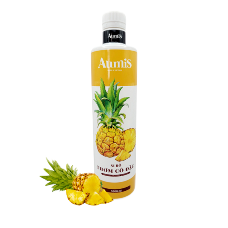 Mứt Cô Đặc (Fruit Mix) Aumis Thơm (Pineapple) 1.000 ml có nguồn gốc từ nông sản Việt Nam được lựa chọn kỹ càng, Với vị chua và thơm đặc trưng, Hương vị chua ngọt hài hòa từ những quả thơm ở vùng Đồng bằng sông Cửu Long (Kiên Giang, Tiền Giang, Long An, ...)