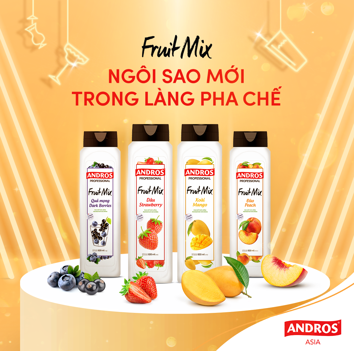 ANDROS FRUIT MIX là dòng nguyên liệu chuyên dùng cho pha chế thức uống. Với kết cấu trái cây xay nhuyễn sánh mịn, sản phẩm mang đến hương vị trái cây đậm đà đầy tinh tế và tạo nên màu sắc hấp dẫn cho món nước của bạn. Dễ vận hành và giữ được lâu sau khi mở nắp, đây là sự lựa chọn tối ưu cho các chuyên gia pha chế tự do sáng tạo.