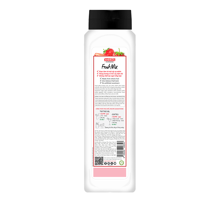 ANDROS FRUIT MIX là dòng nguyên liệu chuyên dùng cho pha chế thức uống. Với kết cấu trái cây xay nhuyễn sánh mịn, sản phẩm mang đến hương vị trái cây đậm đà đầy tinh tế và tạo nên màu sắc hấp dẫn cho món nước của bạn. Dễ vận hành và giữ được lâu sau khi mở nắp, đây là sự lựa chọn tối ưu cho các chuyên gia pha chế tự do sáng tạo.
