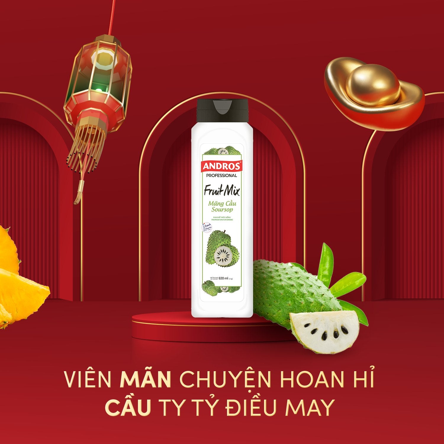Mứt Trái Cây (Fruit Mix) Andros Mãng Cầu (custard apple) 820ml x 8 Chai