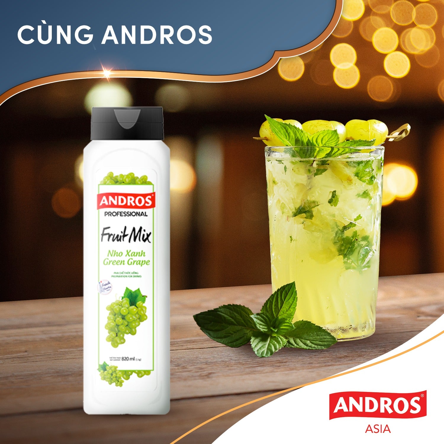 Mứt Trái Cây (Fruit Mix) Andros Nho Xanh ( Green Grape ) 820ml x 8 Chai