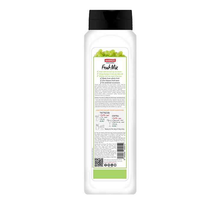 ANDROS FRUIT MIX là dòng nguyên liệu chuyên dùng cho pha chế thức uống. Với kết cấu trái cây xay nhuyễn sánh mịn, sản phẩm mang đến hương vị trái cây đậm đà đầy tinh tế và tạo nên màu sắc hấp dẫn cho món nước của bạn. Dễ vận hành và giữ được lâu sau khi mở nắp, đây là sự lựa chọn tối ưu cho các chuyên gia pha chế tự do sáng tạo.