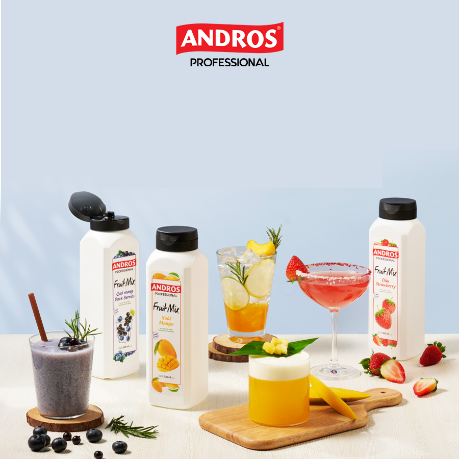 ANDROS FRUIT MIX là dòng nguyên liệu chuyên dùng cho pha chế thức uống. Với kết cấu trái cây xay nhuyễn sánh mịn, sản phẩm mang đến hương vị trái cây đậm đà đầy tinh tế và tạo nên màu sắc hấp dẫn cho món nước của bạn. Dễ vận hành và giữ được lâu sau khi mở nắp, đây là sự lựa chọn tối ưu cho các chuyên gia pha chế tự do sáng tạo.