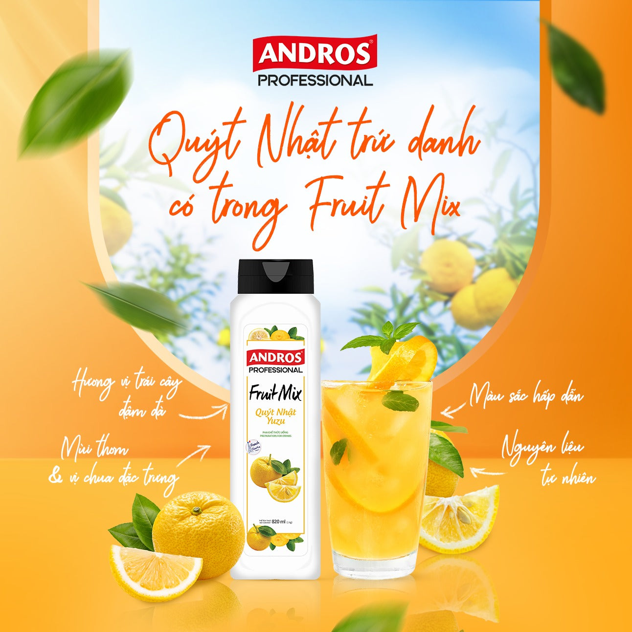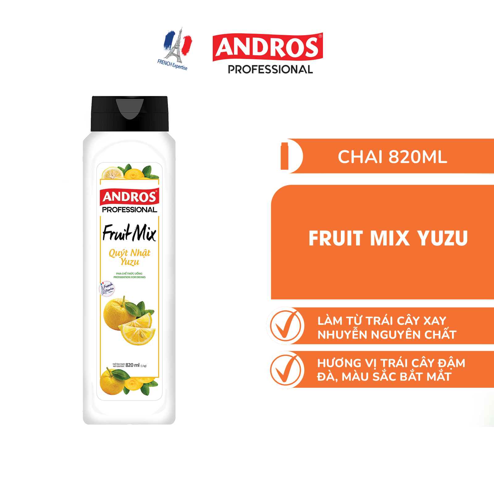 Mứt Trái Cây (Fruit Mix) Andros Quýt Nhật Yuzu (Yuzu) 820ml x 8 Chai