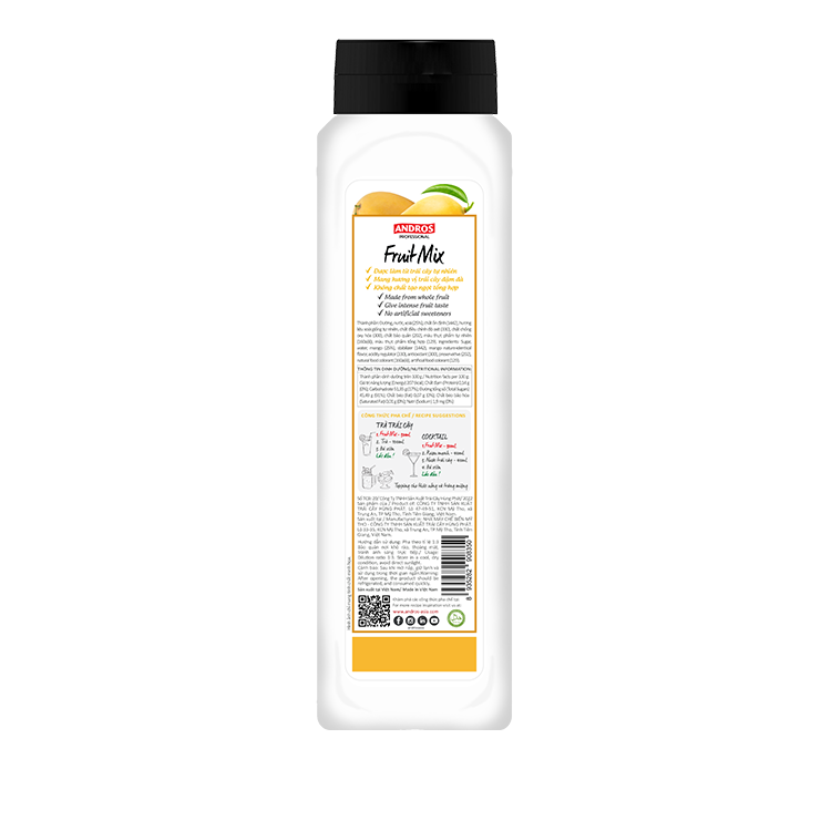 ANDROS FRUIT MIX là dòng nguyên liệu chuyên dùng cho pha chế thức uống. Với kết cấu trái cây xay nhuyễn sánh mịn, sản phẩm mang đến hương vị trái cây đậm đà đầy tinh tế và tạo nên màu sắc hấp dẫn cho món nước của bạn. Dễ vận hành và giữ được lâu sau khi mở nắp, đây là sự lựa chọn tối ưu cho các chuyên gia pha chế tự do sáng tạo.
