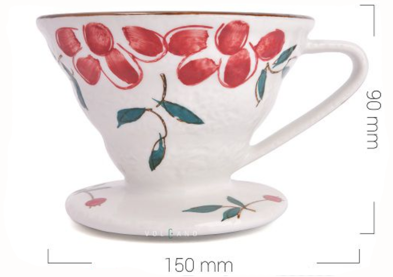 Phểu pha V60 bằng sứ có hoa văn đỏ - 02