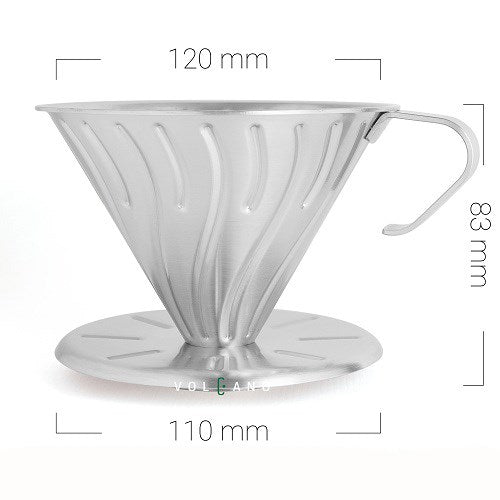 Phểu V60 02 Inox 304 màu bạc, rảnh lượn sóng