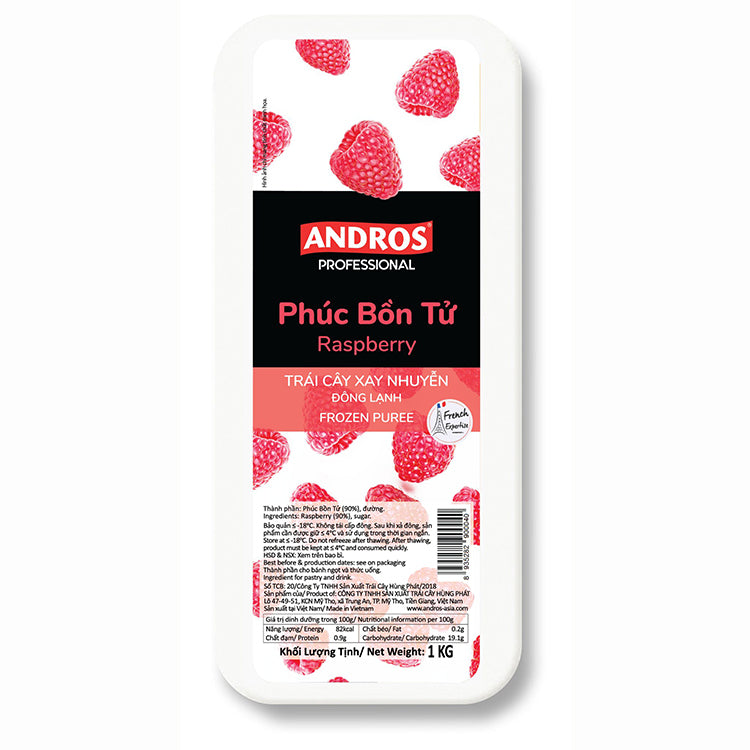 Phúc Bồn Tử Xay Nhuyễn Đông Lạnh Andros 1kg (Raspberry Frozen Puree 1kg) x 6 Hộp