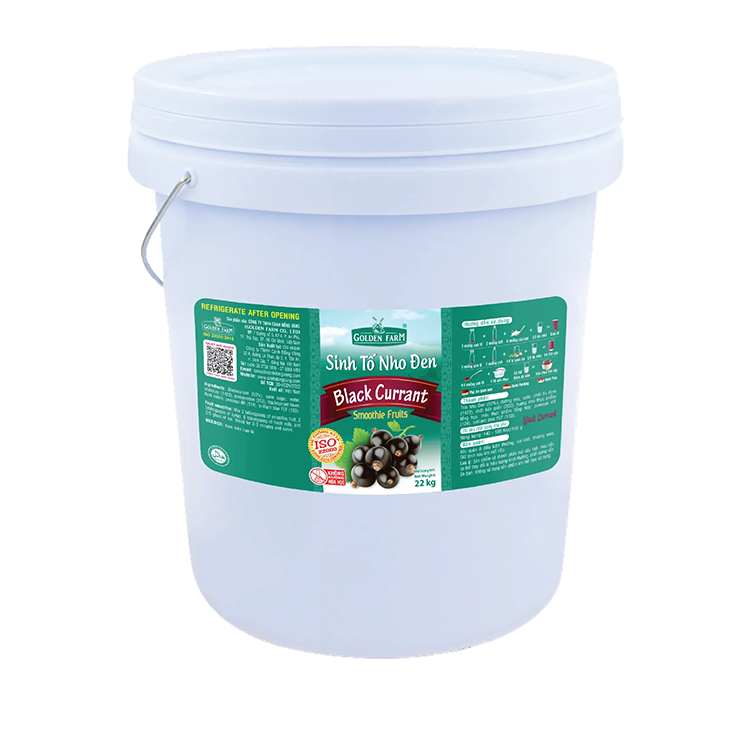Sinh Tố Nho Đen - Golden Farm (Black Currant Smoothie Base - Golden Farm) 22kg nổi bật với hương thơm tự nhiên, vị ngọt thanh mát cùng màu sắc bắt mắt, là thành phần không thể thiếu trong pha chế các loại thức uống và món ăn vặt yêu thích của nhiều gia đình.