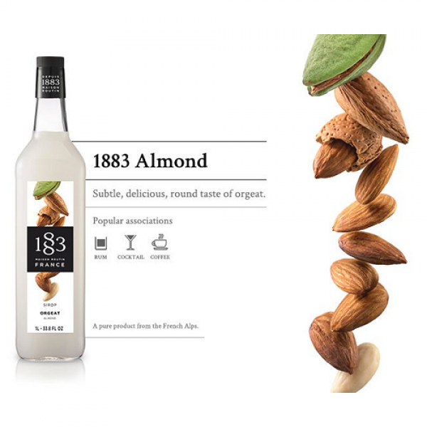 Syrup Almond (Hạnh nhân) 1883 1L ngọt ngào và mượt mà một cách tinh tế, siro Orgeat 1883 mang hương thơm tinh tế của hạnh nhân và ngọt ngào từ đường mía. Được làm từ những nguyên liệu được lựa chọn cẩn thận, sản phẩm đảm bảo an toàn cho người sử dụng và giúp các thức uống nó góp mặt thêm hấp dẫn hơn.