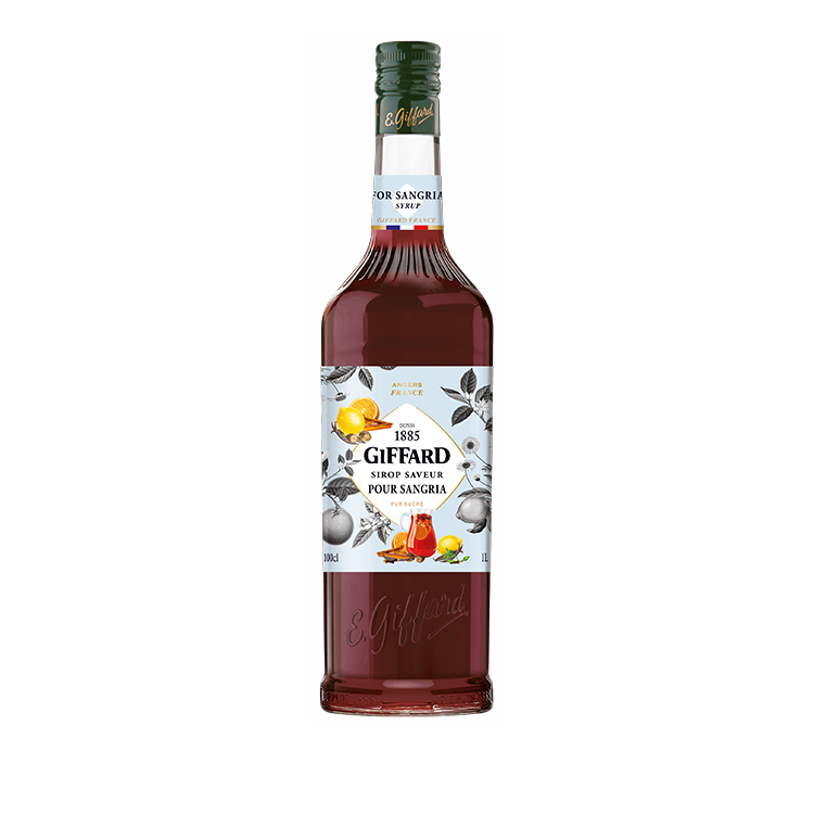 Giffard Sangria Syrup mang lại hương thơm của cam và vỏ chanh quýt kết hợp với vị của quế, vani, đinh hương và nhục đậu khấu tạo nên một hương vị đặc biệt với màu đỏ gạch bắt mắt.