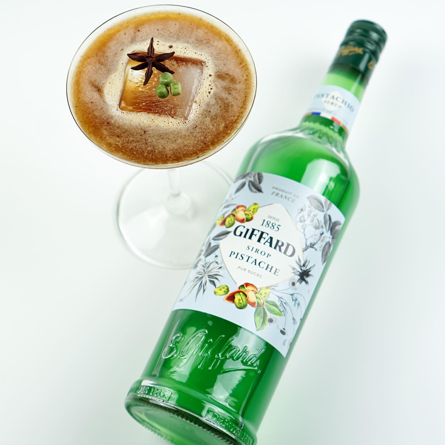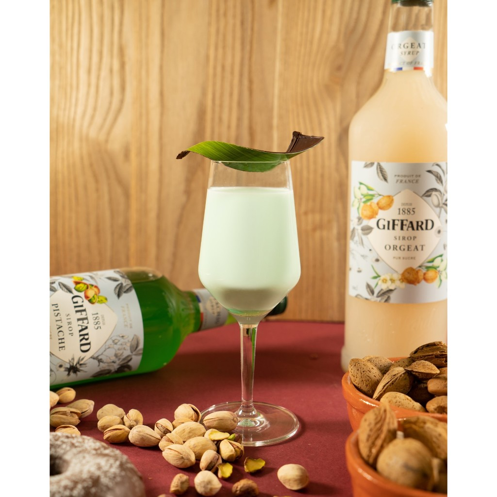 Giffard Pistachio Syrup - Sự cân bằng hoàn hảo giữa vị hạt ấm và vị bơ ngọt ngào - tạo thêm hương vị thơm ngon cho tất cả các món sáng tạo của bạn từ latte đến cocktail hay topping trên kem.