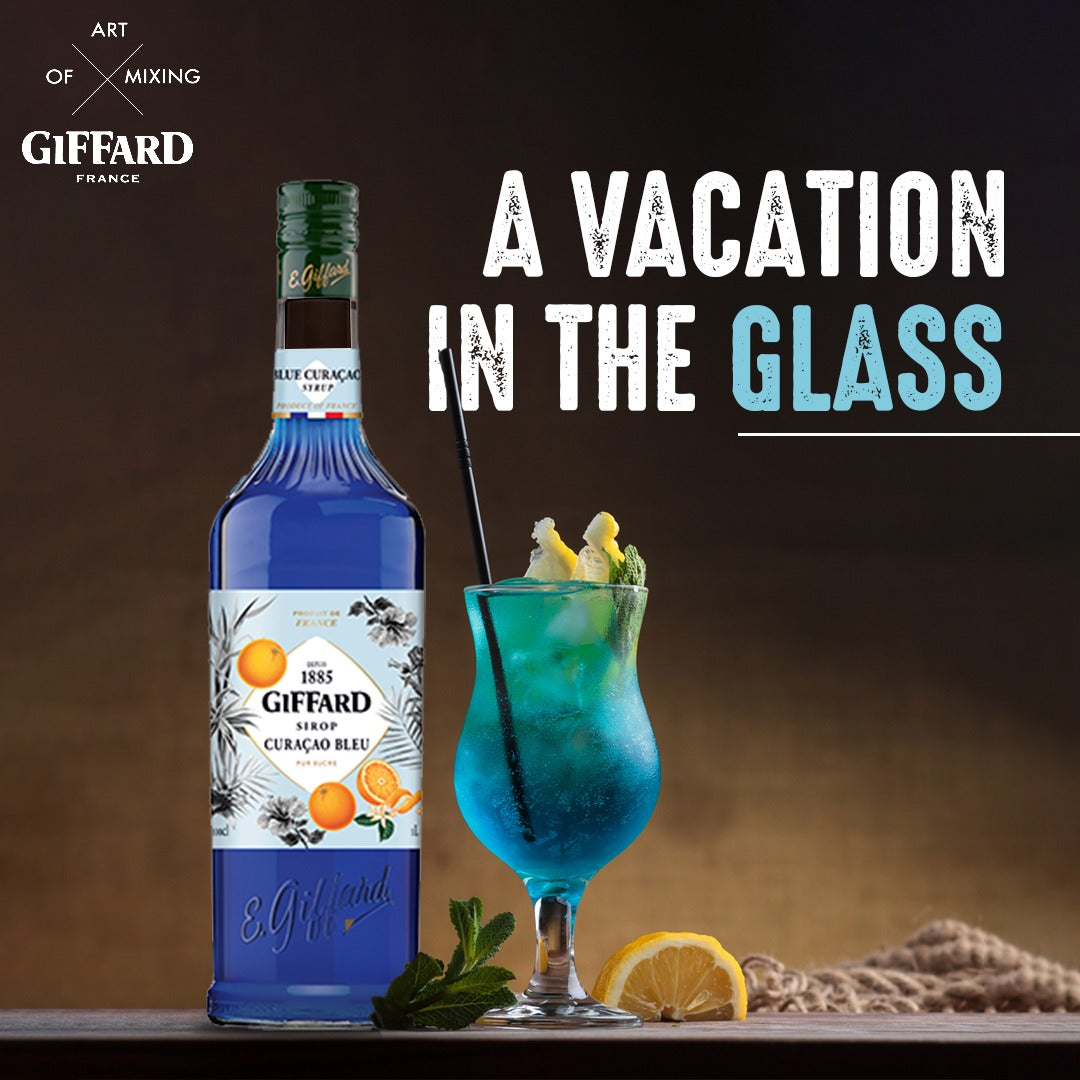 Giffard Blue Curacao Syrup được chiết xuất nên từ tinh dầu tự nhiên của vỏ Laraha sấy khô, một loại cam đắng, không sử dụng chất bảo quản. Syrup mang hương vị Curacao đặc biệt, có màu xanh dương đậm và có thể thêm các loại cocktail để tạo nên vẻ ngoài khác biệt, độc đáo cho ly cocktail. Giffard Blue Curacao Syrup nguyên chất được làm từ cam đắng kết hợp với đường tinh luyện chiết xuất từ củ cải đường. Có hương vị tươi mát và ngọt nhẹ của cam với màu xanh nước đặc trưng gợi nhớ về đảo Curacao.