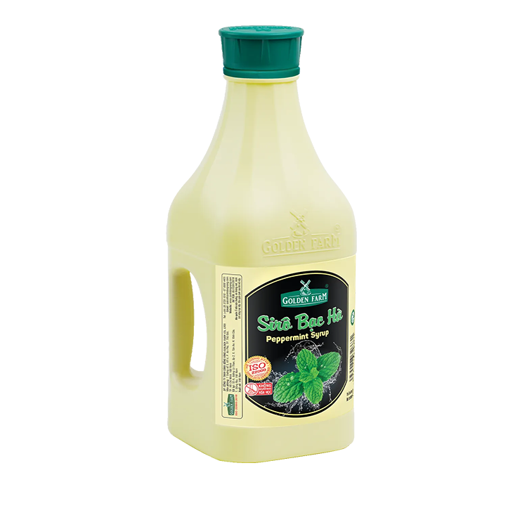 Syrup Golden Farm Bạc Hà (Peppermint Syrup) 2.000 ml nổi bật với hương thơm tự nhiên, hậu ngọt thanh, giúp tăng thêm vị ngon tuyệt hảo cho các món thức uống và nhiều món tráng miệng khác.