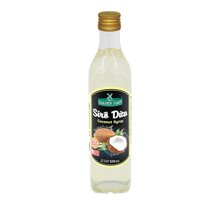 Syrup Golden Farm Dừa (Coconut Syrup) 520 ml nổi bật với hương thơm tự nhiên, hậu ngọt thanh, giúp tăng thêm vị ngon tuyệt hảo cho các món thức uống và nhiều món tráng miệng khác.