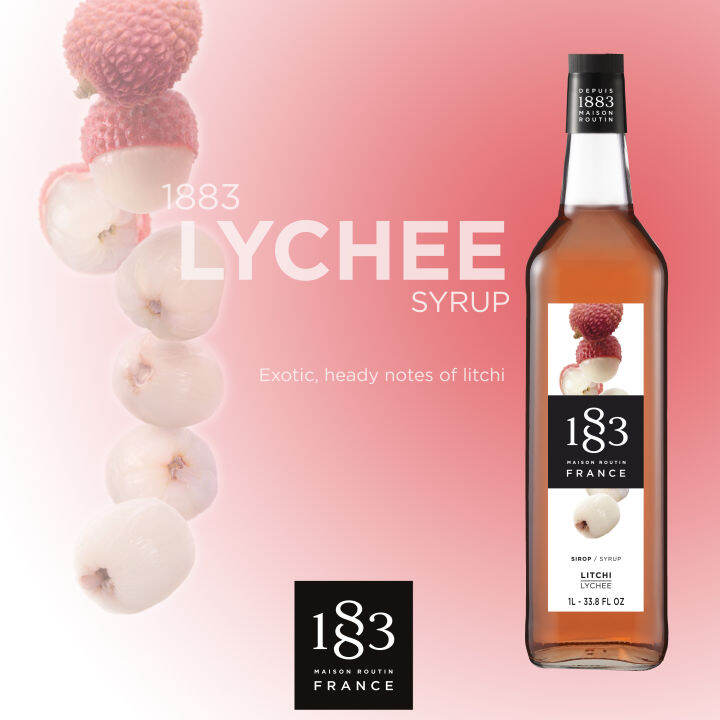 Mở đầu bằng hương hoa nồng nàn cùng nốt hương như nước hoa hồng, Syrup Lychee (Trái Vải) 1883 1L phát triển một hương vị rất ngọt ngào được bao bọc bởi hương dâu tây, trái cây họ cam quýt, lê và dưa hấu. Được làm từ những nguyên liệu được lựa chọn cẩn thận, Syrup Vải 1883 bao gồm đường mía nguyên chất và thành phần bí mật là nước tinh khiết từ dãy Alps.