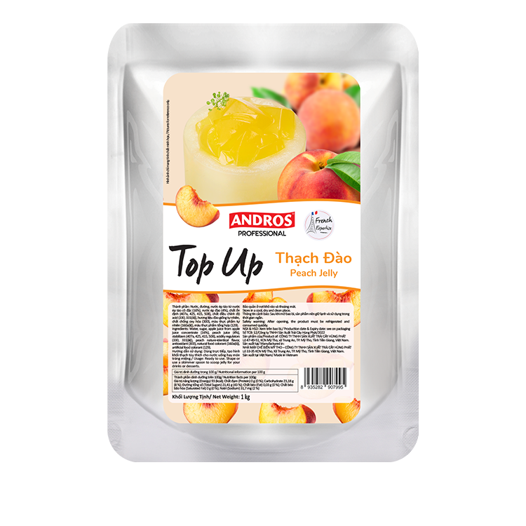 ANDROS Top Up Thạch trái cây là dòng sản phẩm topping, nguyên liệu phục vụ cho ứng dụng ngành F&B. Được làm từ nước ép trái cây tự nhiên, sản phẩm có cấu trúc thạch mềm mượt tạo sự vui miệng và lớp màu bắt mắt cho món nước. Đây là Thạch topping trái cây hoàn hảo mang lại trải nghiệm mới, sự sáng tạo cho các chuyên gia và tính cải tiến cho thực đơn của bạn.