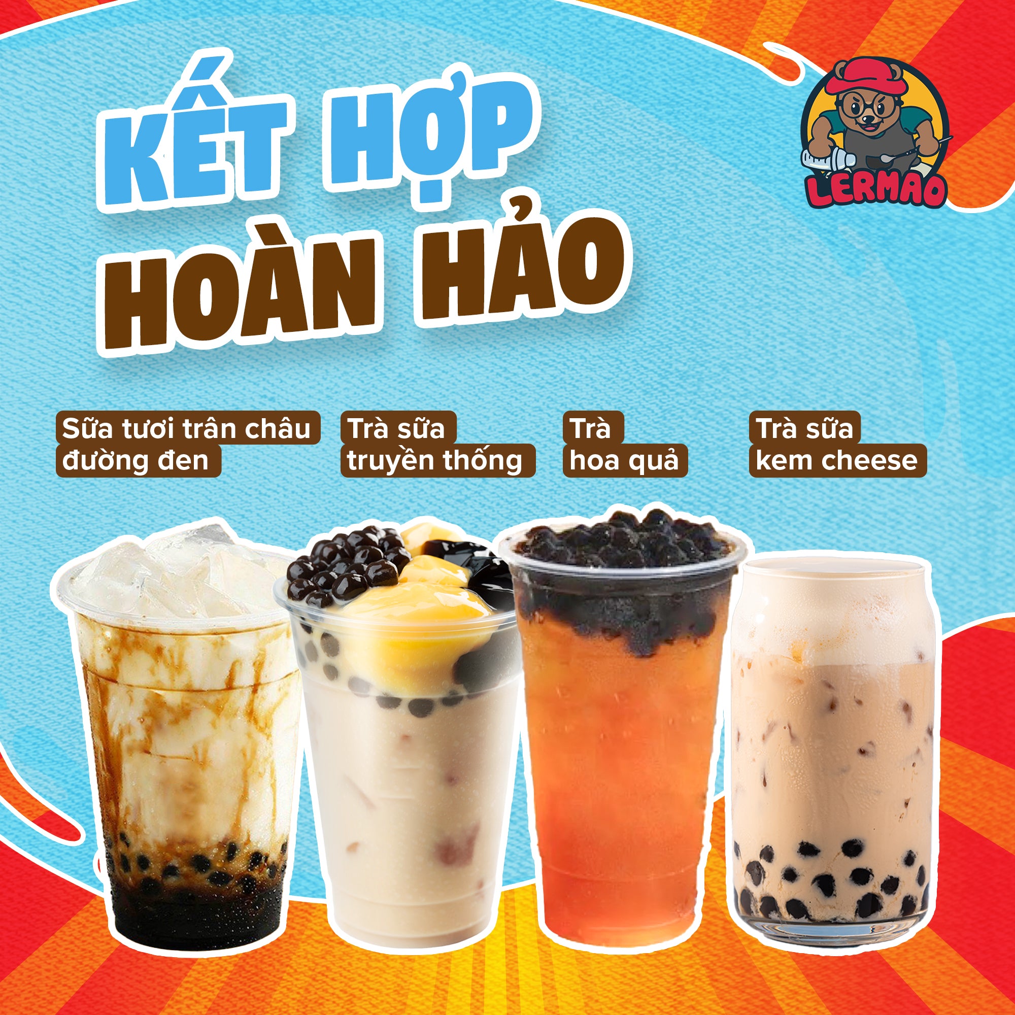 • Trà sữa kem cheese — Béo ngậy, quyện đường đen đậm đà.