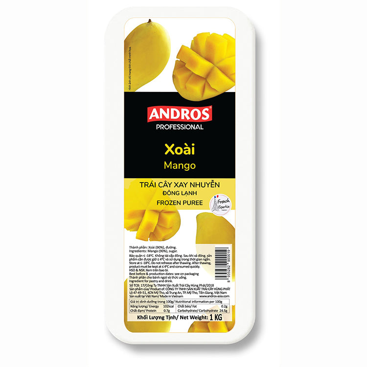 Xoài Xay Nhuyễn Đông Lạnh Andros 1kg (Mango Pulp Frozen Puree 1kg) x 6 Hộp